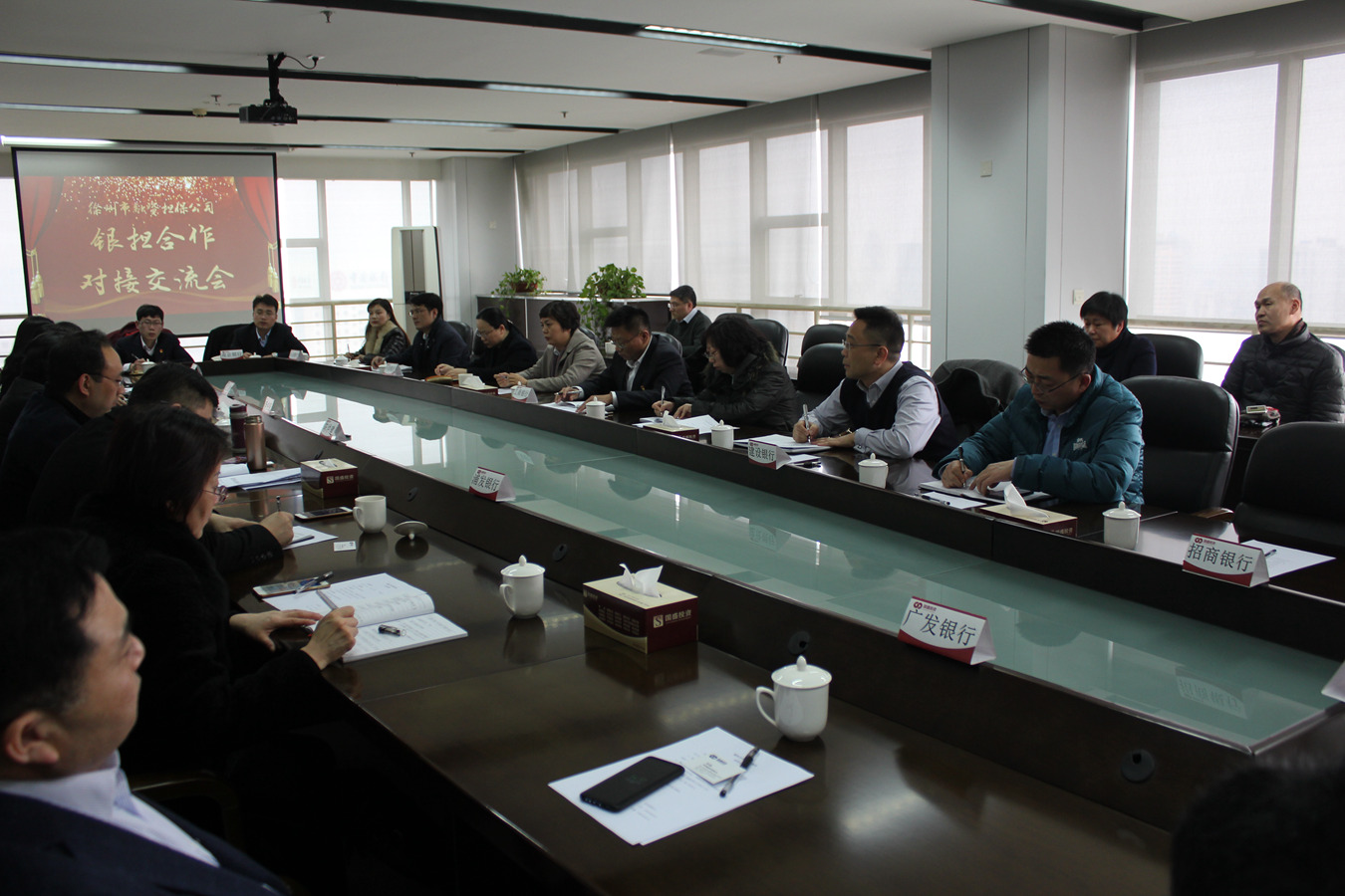 2月9日下午,徐州市融資擔保公司召集工商銀行、農業(yè)銀行、中國銀行、建設銀行等10家銀行機構分管信貸的相關(guān)領(lǐng)導,召開(kāi)“銀擔合作對接交流會(huì )”。國盛公司總經(jīng)理李中亞、徐州市融資擔保公司總經(jīng)理曹義姍參會(huì )。
