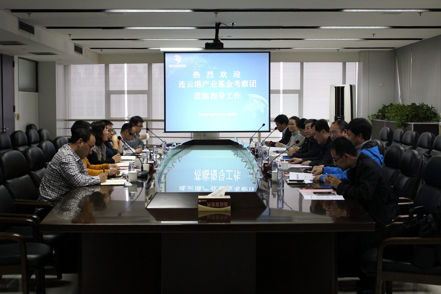 趙總首先對考察團蒞臨表示歡迎,并對國盛公司歷史沿革、發(fā)展概況、各業(yè)務(wù)板塊運作情況進(jìn)行介紹。同時(shí),對徐州市產(chǎn)業(yè)基金運作情況向考察團做了詳細說(shuō)明。隨后,考察團介紹了連云港市產(chǎn)業(yè)發(fā)展、金控平臺設立、產(chǎn)業(yè)基金籌建等相關(guān)情況。雙方在會(huì )上就產(chǎn)業(yè)基金出資人安排、資金成本等問(wèn)題以及如何利用基金等金融手段助推地方產(chǎn)業(yè)轉型升級等話(huà)題進(jìn)行了深入探討。