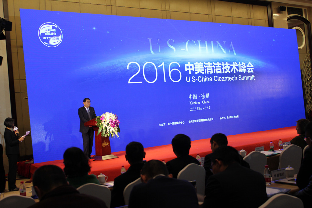 12月6日-7日,由市國盛公司和美中清潔技術(shù)中心聯(lián)合主辦的2016中美清潔技術(shù)峰會(huì )在徐州云泉山莊順利召開(kāi)。市委副書(shū)記楊時(shí)云,市委常委、副市長(cháng)王安順、市財政局局長(cháng)李京城、市國盛公司董事長(cháng)趙麗,國務(wù)院參事、中國可再生能源學(xué)會(huì )理事長(cháng)石定寰,美國駐上??傤I(lǐng)事館環(huán)境科技領(lǐng)事芮力、美中清潔技術(shù)中心總裁安鋒等出席。另有國盛公司邀請的國內外400多名企業(yè)負責人、專(zhuān)家學(xué)者參會(huì )。