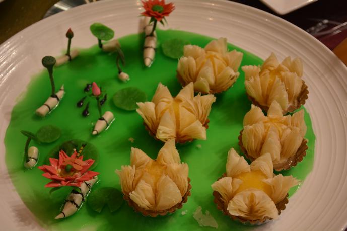 本次比賽包含切配、涼菜、熱菜、面點(diǎn)、擺臺五個(gè)項目,全面考察了員工的各項技能。切配環(huán)節主要考驗基本刀工;涼菜、熱菜環(huán)節指定主材,鼓勵員工開(kāi)拓思維、敢于創(chuàng )新;面點(diǎn)環(huán)節比拼的是創(chuàng )意與技藝的結合;擺臺環(huán)節則更注重規范和標準。較往年相比,今年技能比武大賽的參與度、主動(dòng)性與創(chuàng )新性均有大幅提升:交叉崗位選手明顯增多,員工在扎實(shí)自身基本功的基礎上,開(kāi)始注重多元化發(fā)展;新進(jìn)員工表現踴躍,日常培訓與比賽模式激勵了新員工迅速成長(cháng);創(chuàng )意與文化有機結合,特別是面點(diǎn)作品“云龍湖畔”大氣且富有內涵,給現場(chǎng)觀(guān)眾留下了深刻印象。